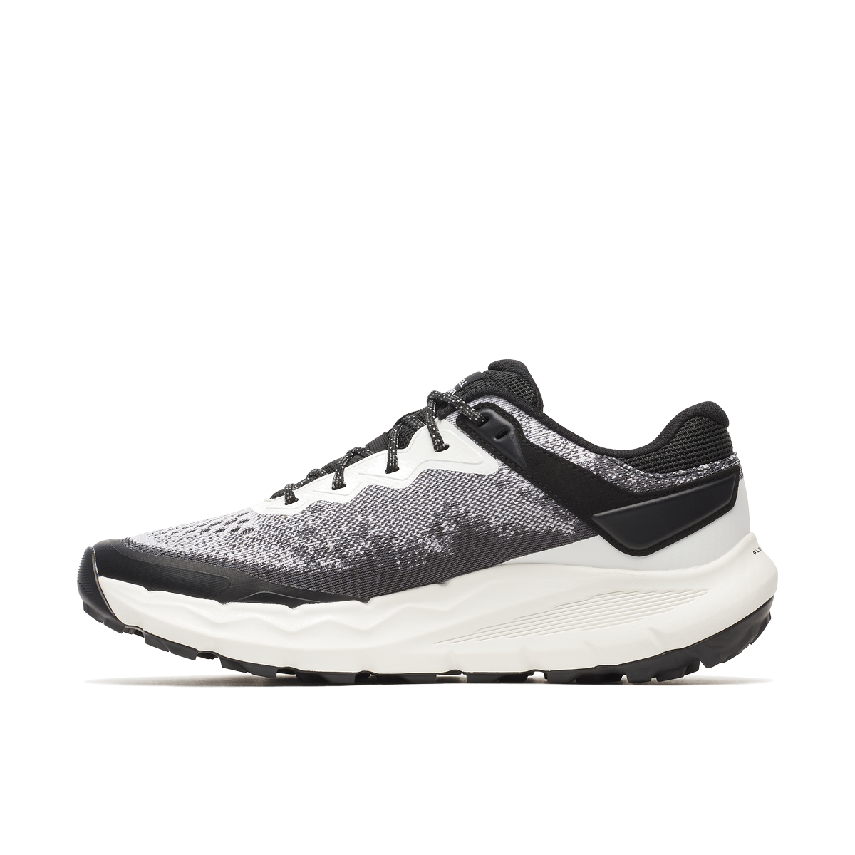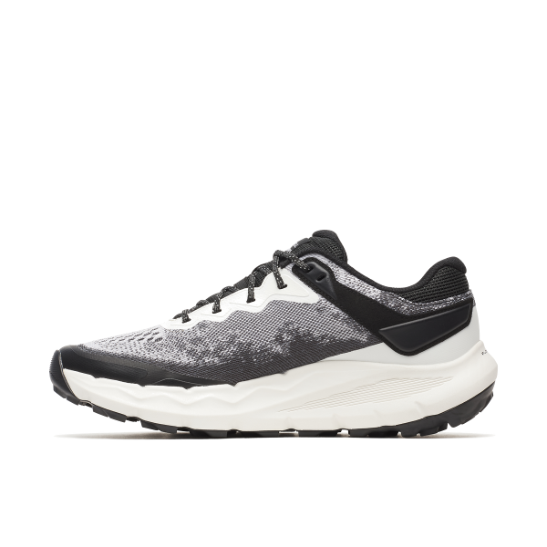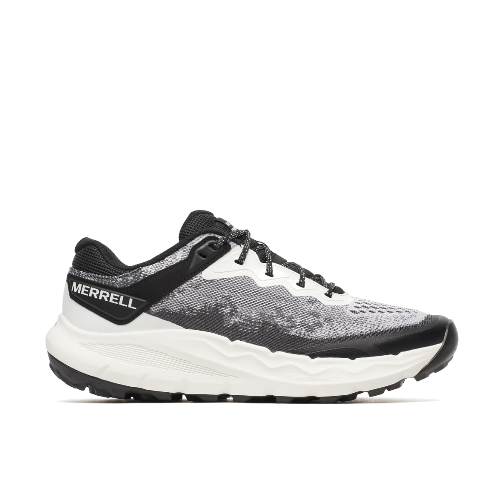 O topo apresenta um tecido Matryx® entrelaçado de camada única, reforçado com Kevlar, que maximiza a respirabilidade e durabilidade, reduzindo drasticamente o estiramento. Internamente, o forro absorve a humidade, enquanto a entressola apresenta a nossa melhor espuma FloatPro™ para conforto em longas distâncias. Por baixo, utiliza uma sola Vibram® MegaGrip® com ressaltos de 5 mm que oferecem tração máxima.